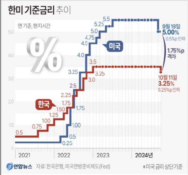 [3] 연합뉴스TV - 기준금리 0.25%p 인하…3년 2개월 만에 긴축 종료 (https://www.yonhapnewstv.co.kr/news/MYH20241011010900641)