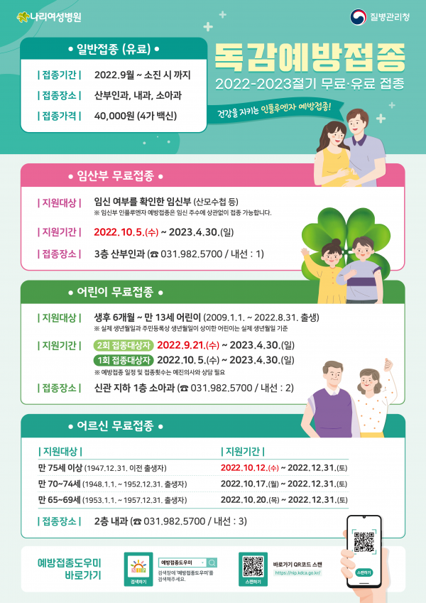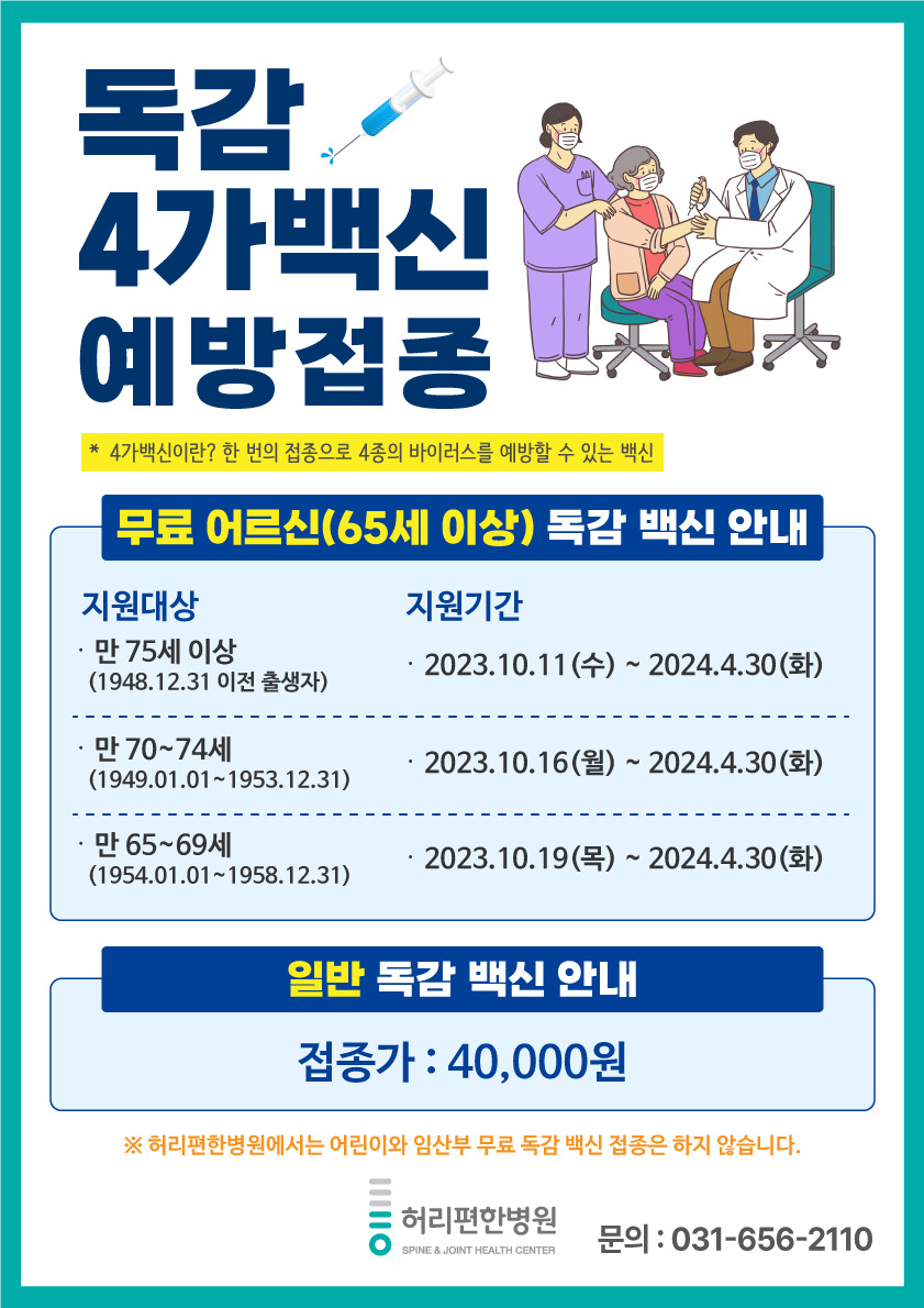 올해도 많은 분들이 독감 예방접종을 통해 건강한 겨울을 보내시길 바랍니다. 무료접종을 놓치지 마시고, 꼭 참여하시기 바랍니다!