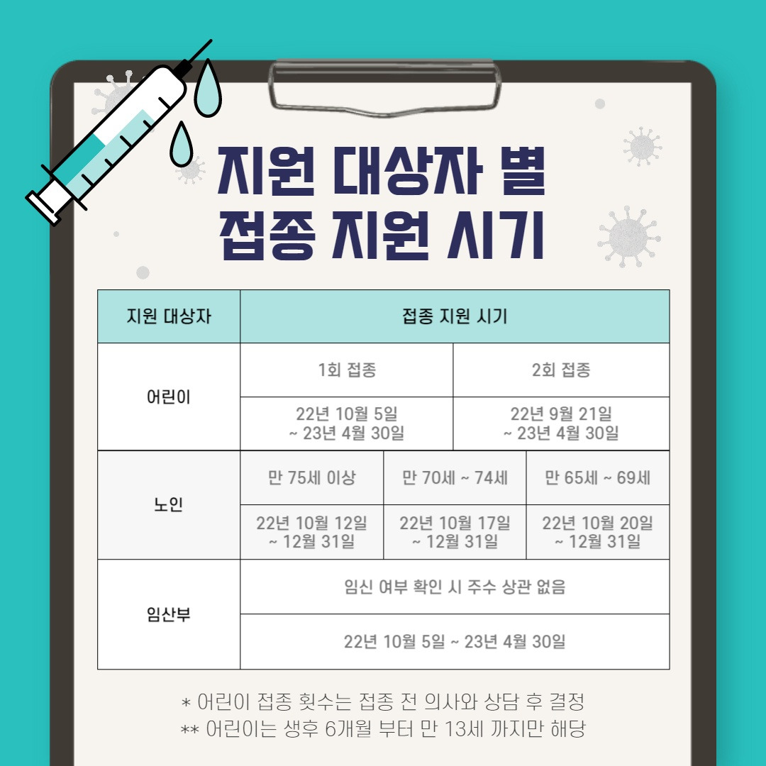- 75세 이상 : 2023년 10월 11일부터 2024년 4월 30일까지