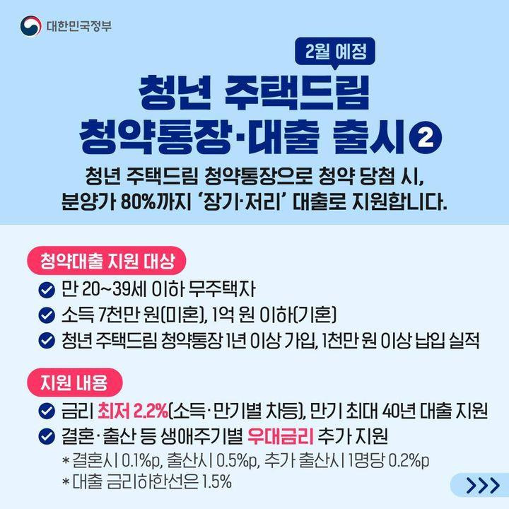또한, 20세에서 39세 사이의 첫 주택 구매자를 위한 대출 프로그램도 2월에 시행될 예정입니다. 이 프로그램은 최대 7,000만 원의 소득을 가진 가구를 대상으로 하며, 주택 비용의 80%까지 대출이 가능하고, 최소 2.2%의 이자율이 적용됩니다. 결혼이나 출산 시 추가적인 혜택도 제공되어, 무주택자들에게 실질적인 도움이 될 것입니다.